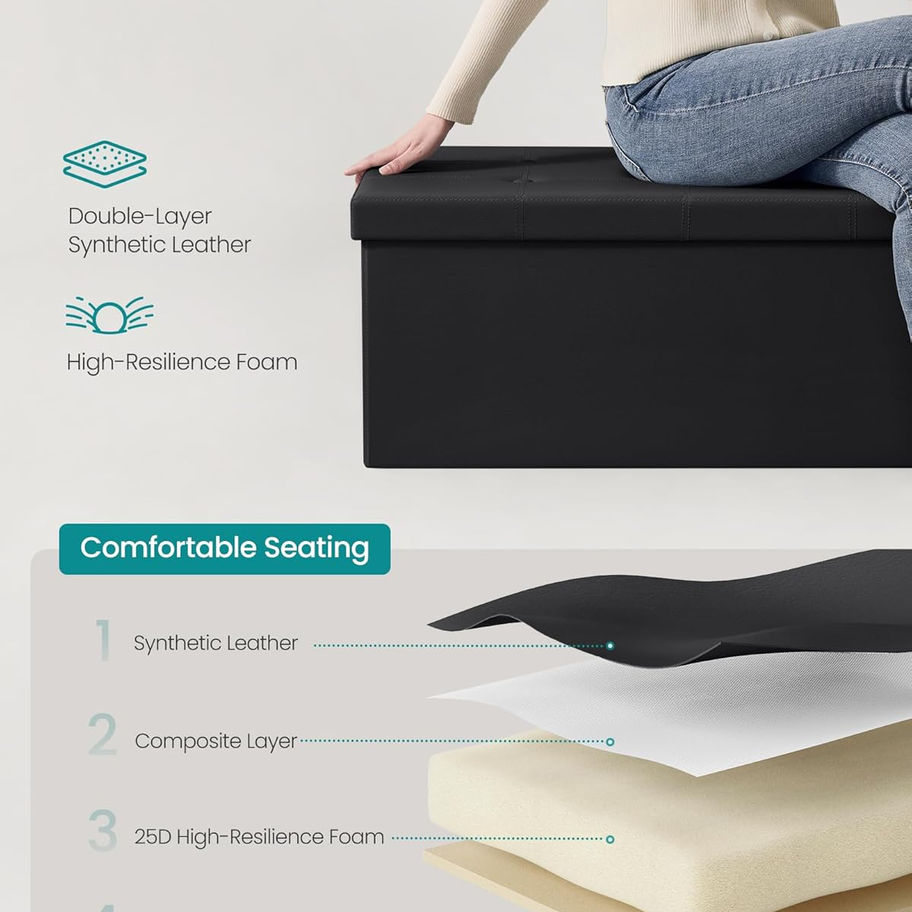 【COMFORTABLE SEATS】Padded with 1" (2.5 cm) thick, high-resilient, high-density foam, this storage bench is resistant to deformation, so you can sit on it comfortably