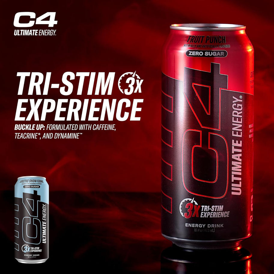 C4 Ultimate Sugar Free Energy Drink 16oz (Pack of 12) | Arctic Snow Cone | Pre