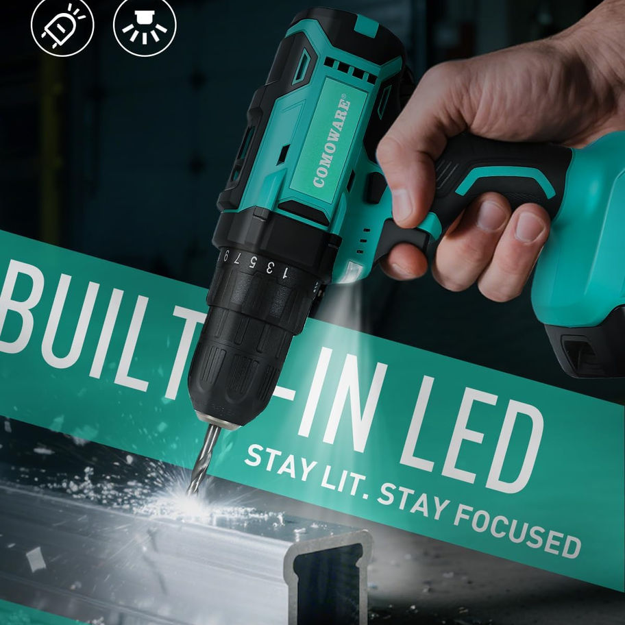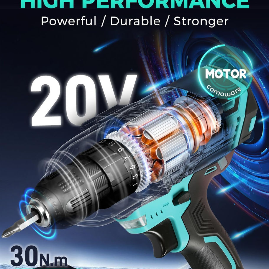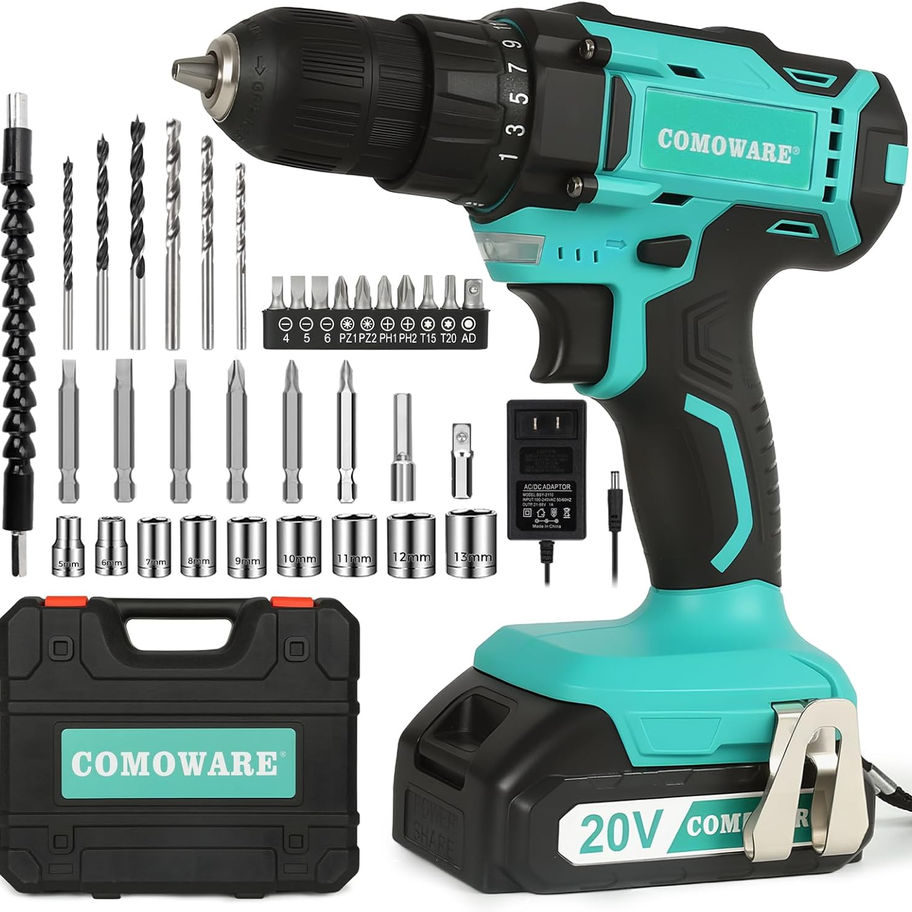 COMOWARE 20V Cordless Drill, Electric Power Drill Set with 1 Battery & Charger,