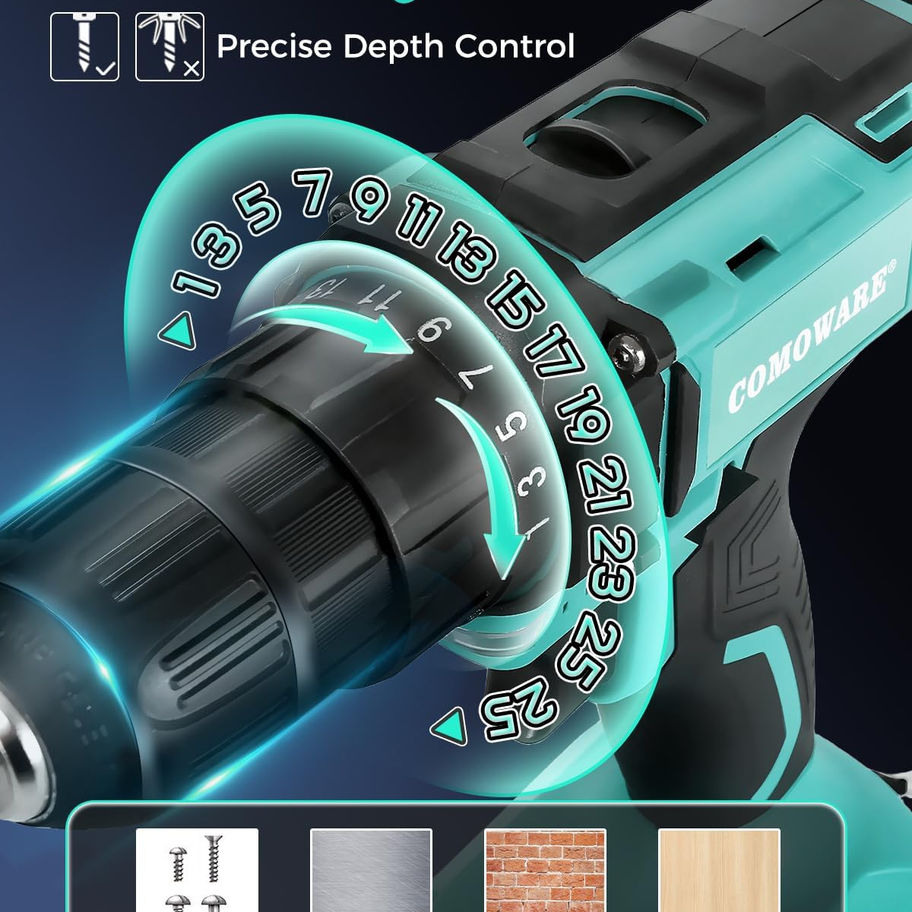 【25+1 Position Clutch & 266 In-lbs Max Torque】 This cordless drill's clutch provides precise control for drilling, which helps to prevent sinking a screw too deep, stripping out the head of a screw or even breaking a screw shaft. 17-Torque allows for various applications and additional 1-torque for drilling.