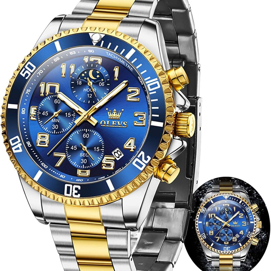 OLEVS Mens Watches Chronograph Watch Luxury Dress Stainless Steel Waterproof Wa