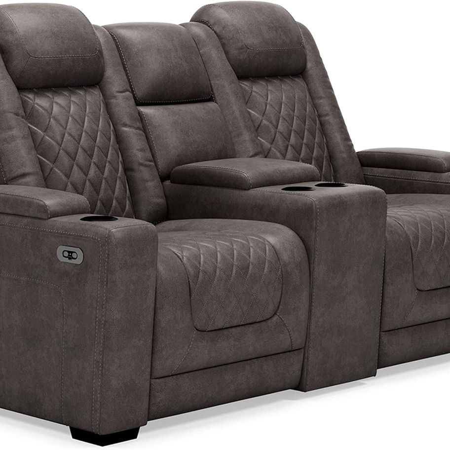 POWER RECLINING LOVESEAT: This dual sided power reclining loveseat with middle seat, flip-down table and 2 cup holders will be a fan favorite for years to come. Sofa and recliner chair sold separately