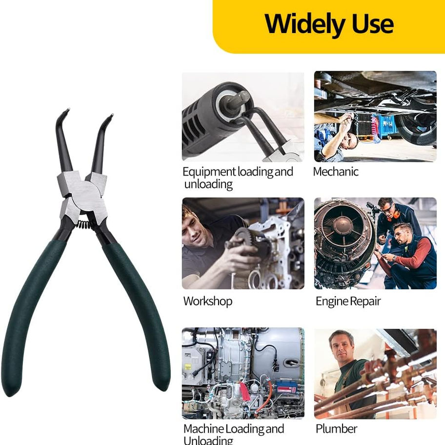 【Multifunctional Tool Set】- The ring pliers are widely used in fixed bearings or bore bearings in the machinery industry, machinery maintenance, bicycles, motorcycles, plumbing and agricultural machinery industries
